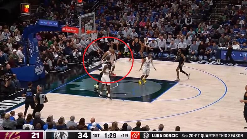 Prvi zvezdnik domačega moštva je pri vodstvu Dallasa s 34:21 žogo ponesel prek celega igrišča, nato pa znotraj rakete 'na pamet' oziroma brez pogleda podal v kot Sethu Curryju, ki mu ni bilo težko zadeti za tri točke.