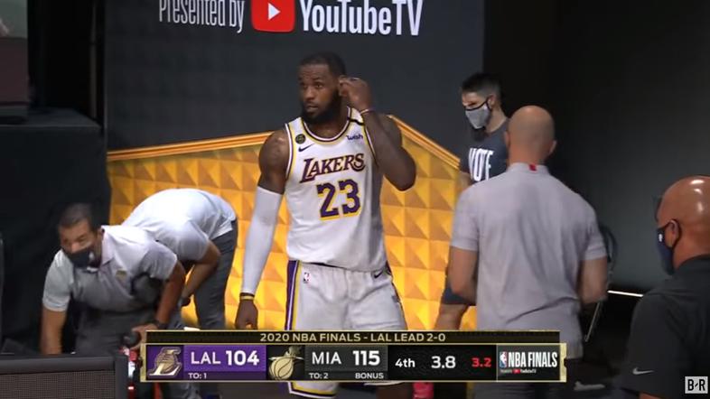 LeBron James, ki se v v finalu lige NBA poteguje za svoj četrti šampionski prstan, je v zaključku tretje tekme z Miami Heat, ko je postalo jasno, da Lakersi ne morejo do preobrata, pred zvokom sirene zapustil prizorišče.