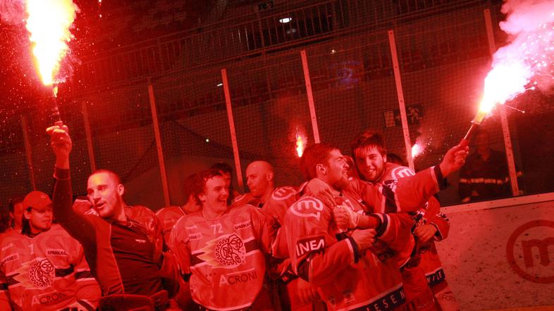 Gostje so v zadnjem delu le ujeli priključek in Jeseničani niso več imeli takšne terenske premoči. Manj kot v prvih dveh tretjinah pa je bilo, bržčas tudi zaradi pomembnosti tekme predvsem za zeleno-bele, nevarnih priložnosti pred vrati Fikrta ali Pintariča. Vse do 52. minute, ko je tokrat skoraj polna Podmežakla eksplodirala od navdušenja; po gneči pred vrati zmajev je odbiti plošček Werner poslal za hrbet Pintariča in Ljubljančane postavil pred domala nerešljivo nalogo. Ko pa je v 59. minuti Mitja Robar ob številčni prednosti tekmecev prestregel plošček in po prodoru lepo našel Tičarja, ta pa je zadel za 4:2, je bilo ljubljanskih upov dokončno konec, na tribunah pa se je začelo veliko slavje.