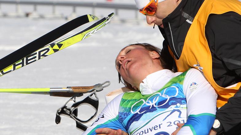 Povedali so nam tekmovalci, ki so prihajali po progi. Vsi smo bili šokirani. Tekli smo tja in prišla nam je nasproti. Skrčena, z zlomljenimi palicami in smučkami, ponavljala je samo: "Hočem iti na štart, hočem na štart!" Ja, kako, saj komaj hodiš? Zdravniki, fizioterapevti in psiholog so opravili izjemno delo.