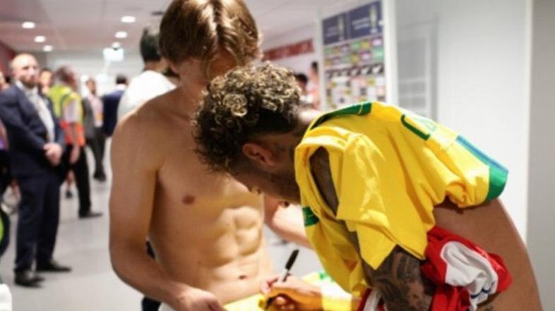 Po koncu tekme si je Brazilec izmenjal dres z zvezdnikom madridskega Reala Lukom Modrićem, posnetek njunega druženja pa je postal pravcati spletni hit.