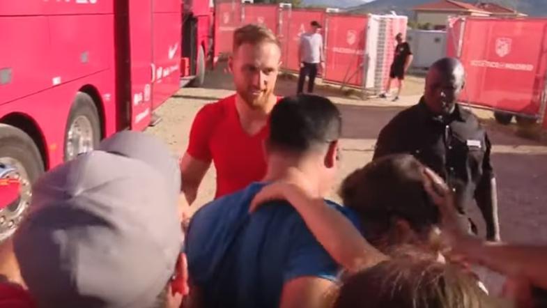 Nogometaši Atlética so med pripravami deležni številčne navijaške podpore, med najbolj obleganimi pa je seveda slovenski vratar, ki se je med deljenjem avtogramov izkazal z velikodušno gesto.