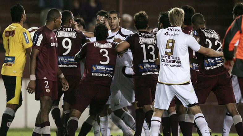Na zadnji tekmi četrte skupine Cope Libertadores med Lanusom (Arg) in Universitariom (Per) je prišlo do neljubega dogodka, ki je prerasel v vsesplošni pretep. Posredovati je morala policija.