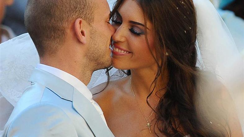 Eden najboljših nogometašev planeta Wesley Sneijder se je poročil, in sicer drugič. Nova gospa Sneijder je postala televizijska voditeljica in manekenka Yolanthe Cabau van Kasbergen. S prejšnjo ženo Ramono Streekstra ima Sneijder sina Jesseyja, ki je tudi prisostvoval srečnemu dogodku svojega očka.