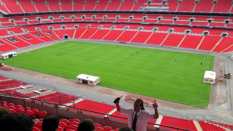 Je šestkrat večji od stadiona Stožice in ni nekaj nenavadnega, če se na njem izgubiš. Na tribune, zelenico, v slačilnico ... objekta z največ stranišči na svetu nas je popeljal možak, ki spominja na g. Beana.