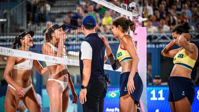 Čeprav so od ženskega finala odbojke na mivki minili že trije dnevi, pa se ta posnetek še vedno širi po spletu. In upravičeno. Sredi odločilnega niza sta se brazilski tekmovalki in njuni kanadski nasprotnici pošteno sporekli, nato pa je asa iz rokava povlekel eden od organizatorjev, zadolžen za glasbo.