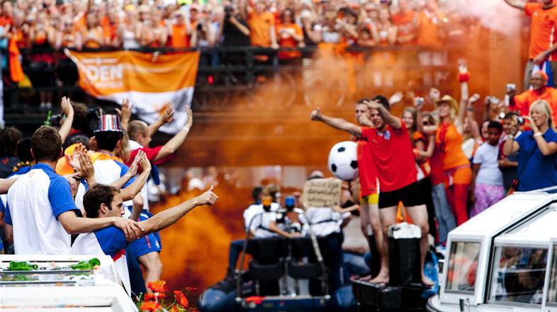 Ni bil tako veličasten kot za svetovne prvake, vendar je na sprejemu tudi Nizozemce pričakalo približno pol milijona hvaležnih navijačev. Oranžni pa so se popeljali po amsterdamskih kanalih.