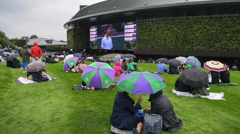 Prvi teniški igralci bi na igrišča All England Cluba morali stopiti ob 12. uri po slovenskem času, a je to preprečil dež. Ker se tudi pozneje vreme še ni izboljšalo, so organizatorji že odpovedali 16 dvobojev, tudi tretji dvoboj na igrišču številka 12, kjer bi se polfinalistka Roland Garrosa Zidanškova v prvem krogu morala pomeriti z osmo postavljeno Pliškovo.