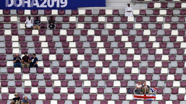 Prazni sedeži na prvenstvu so bili druga značilnost tekmovanja v katarski prestolnici, ki je potekalo dobra tri leta pred SP v nogometu. Zaradi različnih ukrepov je bil stadion proti koncu prvenstva vse bolj poln. Tako so pripeljali tudi tuje delavce, ki pa so jih, nevajene spremljanja atletike, morali animatorji s ploskanjem usmerjati, da so ustvarjali zvočno kuliso.