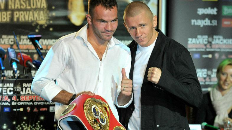Dejan Zavec in Rafal Jackiewicz sta pred zbrano druščino novinarjev in vseh ostalih, ki so bili prisotni v hotelu Kongo, stopila v mešanici umetne megle in rahle svetlobe, ki je bila celo tako rahla, da sta morala boksarja po koncu soočenja še enkrat stopiti pred fotografske objektive. Svetovni prvak in prvi izzivalec sta se na odru prijateljsko objela in drug drugemu zaželela veliko sreče pred njunim drugim obračunom, ki bo v soboto, 4. septembra, v ljubljanskih Stožicah.