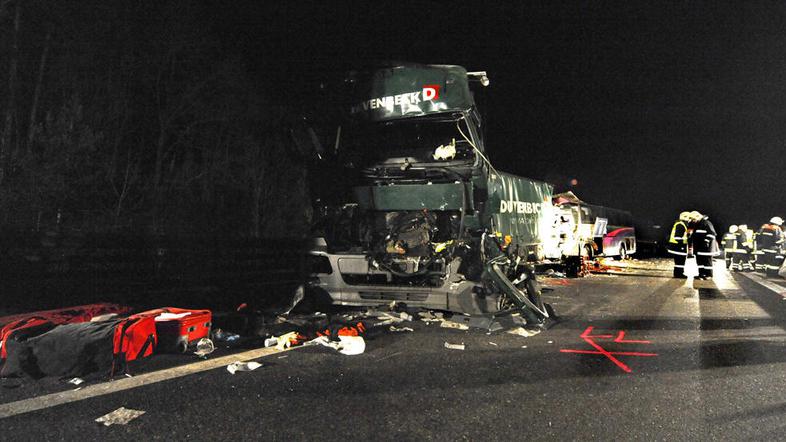Kako je do nesreče prišlo, še ni povsem znano. Jasno je le, da je avtobus z nemškimi registrskimi oznakami trčil v tovornjaka z romunsko oz. slovaško registracijo. Policija domneva, da naj bi najprej trčila oba tovornjaka, ki sta vozila drug za drugim, nato pa naj bi v njiju trčil še avtobus.