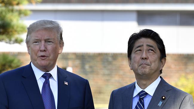 O napetostih na Korejskem polotoku bo danes Trump govoril tudi z japonskim premierjem Shinzom Abejem, s katerim sta medtem že igrala golf skupaj z japonskim poklicnim igralcem golfa Hidekijem Matsuyamo.