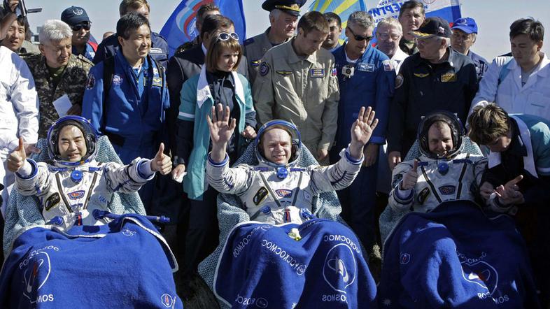 Trojica je v vesolje poletela decembra, na ISS, ki se nahaja 350 kilometrov nad Zemljo, pa so zagotavljali podporo trem misijam raketoplanov in dokončali dela na ameriškem raziskovalnem laboratoriju. Na ISS zdaj delata ruska kozmonavta Aleksander Skvorcov in Mihail Kornijenko ter ameriška astronavtka Tracy Caldwell Dyson.