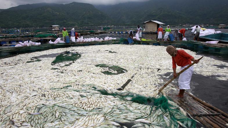 Okrog 800 ton mrtvih rib se je pojavilo na gladini jezera ob filipinskem vulkanu Taal, blizu Manile, poroča Reuters.