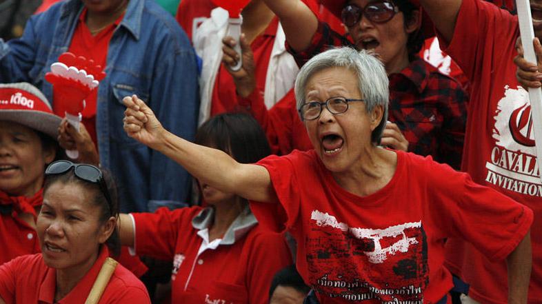 Več deset tisoč protestnikov v rdečih majicah je znova na ulicah tajske prestolnice Bangkok. Z nasilnimi ukrepi želijo zatreti vojaško vladavino ter na Tajsko prinesti demokracijo. Nekateri vojaki so se že začeli umikati.