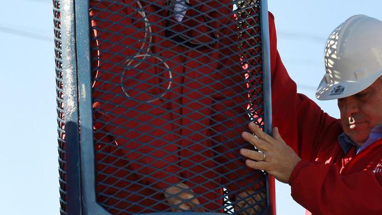K rudniku, v katerem je globoko pod zemljo še vedno ujetih 33 rudarjev, so pripeljali železno kapsulo, s pomočjo katere jih bodo rešili. googletag.cmd.push(function() { googletag.display('divInArticle'); });