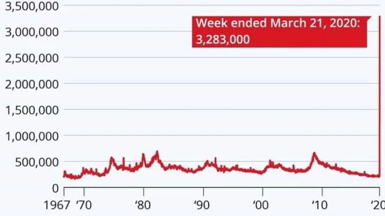 V ZDA beležijo rekorden skok nezaposlenih. Samo 3,28 milijona so jih zabeležili v zadnjem tednu dni. Graf, ki so ga izdali pri Ameriškem zavodu za zaposlovanje kaže na razsežnost krize, ki je zajelo ameriško in svetovno gospodarstvo.