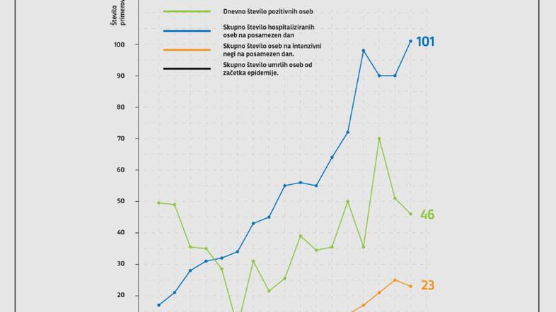 Trend obolelosti s koronavirusom v Sloveniji na dan 28. 3. 2020 (00:00 - 24:00): Število testiranih: 997 - Število pozitivnih oseb: 46 - Število hospitaliziranih: 101 - Število oseb na intenzivni negi: 23 - Število umrlih oseb: 2 #covid19 #koronavirus @MinZdravje@NIJZ_pr pic.twitter.com/9ZzJmR4njy